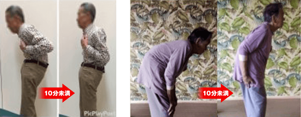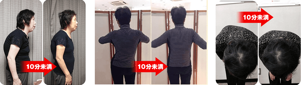 深部の筋肉から脊柱まで一気にゆるゆるになり、1回で別人のごとく姿勢が変わります。基本的には、百発百中でこのような結果が出るので、どれだけ悪化し尽くした症状であったとしても対応できます。
