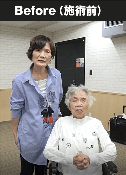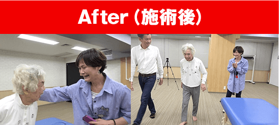 この治療法を使ってたった1回施術をしただけでスタスタ歩き回れるように!付き添いでいらっしゃった娘さんは思わず涙して、歩行の様子をスマートフォンで記念撮影されていました