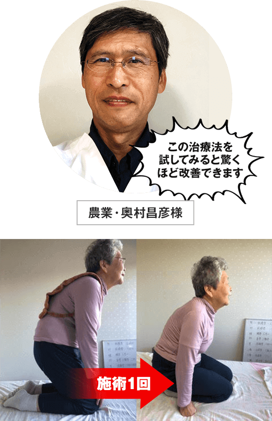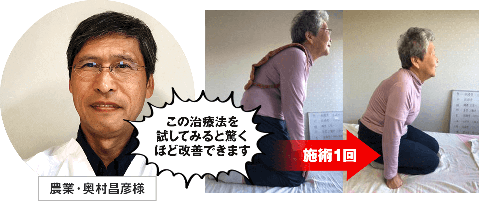 ボルトの入った腰痛患者から、まったく腰が伸ばせないギックリ腰、脚を引きずるほどの膝痛まで、どんな重度の痛みや可動域制限も、この治療法によって完全に消すことが可能になります。