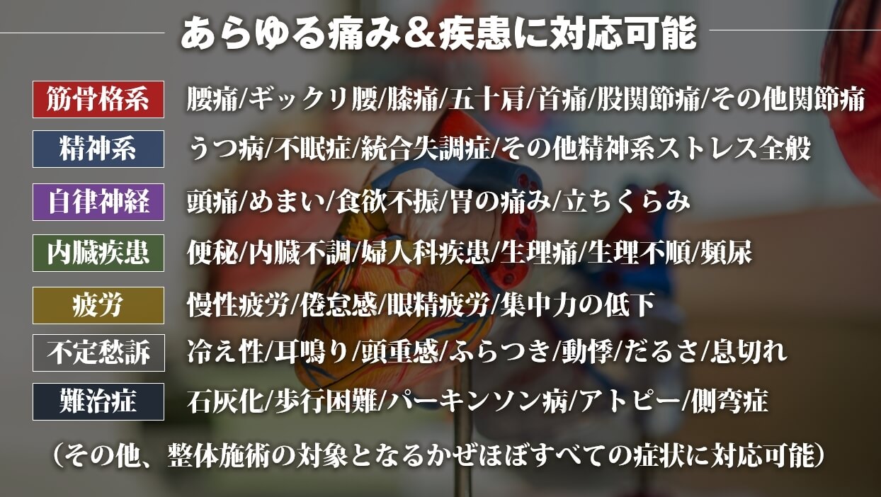 では、具体的にどんな症状に対応できるのか?そのほんの一例をご紹介しますと…