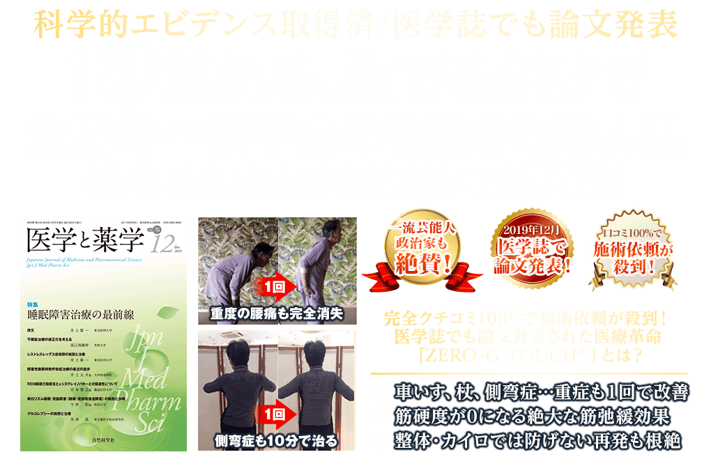 これからあなたにお伝えする治療法は、病院関係者が読む医学誌(2019年12月号「医学と薬学」)にも論文が掲載されたばかりの、最先端の医療革命と業界内でも話題になっている治療法です。その卓越した実績の一部をご紹介すると…