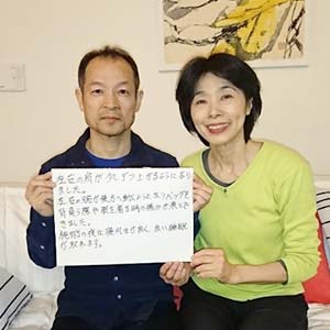 中井先生には、信頼してもうかれこれ10年間、私の自宅で施術会を行っていただいています。妻、娘や孫、親戚、ご近所さんを呼んで施術をしてもらうのですが、一家の日々の健康維持のために欠かせない存在です。施術の内容も身体に一切の負担がなく、極めて安全なので、安心してお任せしています。