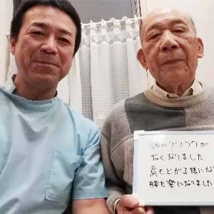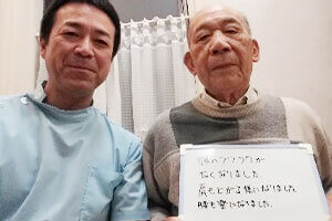 もちろん、その場だけの治療効果ではありません。後日娘さんからも、「日々、歩行力がアップしている感じです!夜中にトイレに1人で歩き出し驚きました」と治療効果が継続しているとのご報告をいいただきました。それだけではなく…