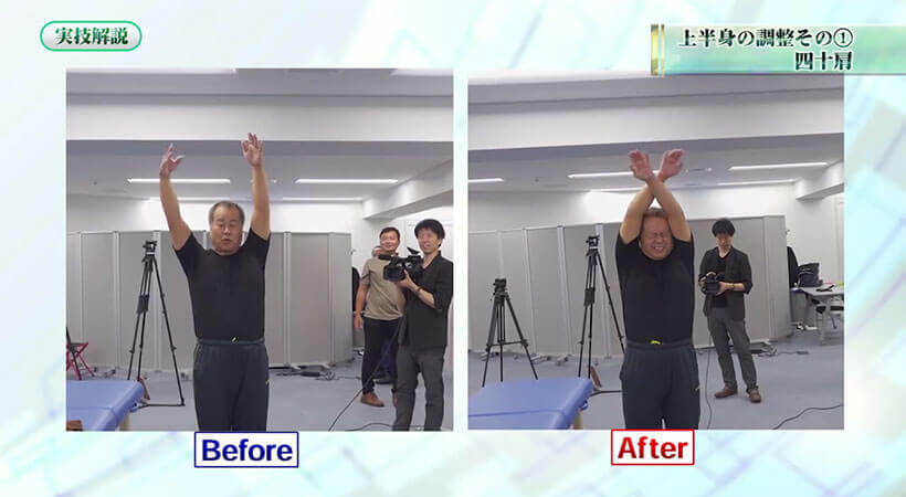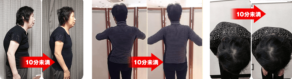 深部の筋肉から脊柱まで一気にゆるゆるになり、1回で別人のごとく姿勢が変わります。基本的には、百発百中でこのような結果が