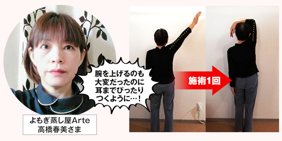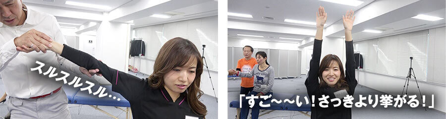 施術は思っていた以上にソフトで「何をされているんだろう」という不思議な感覚でしたが、体のバランスがどんどん変わり、痛みが軽減されていくとても不思議な施術でした。そして施術が終わると、肩や腰の違和感が消えていることに驚きます。