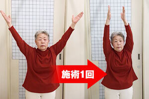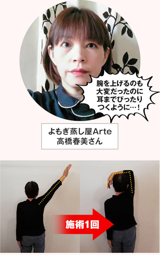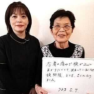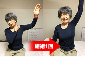 超重症な四十肩・五十肩の高齢患者さんでも引っ掛かりをほとんど感じない状態まで1回で改善します。