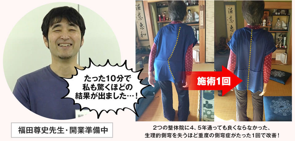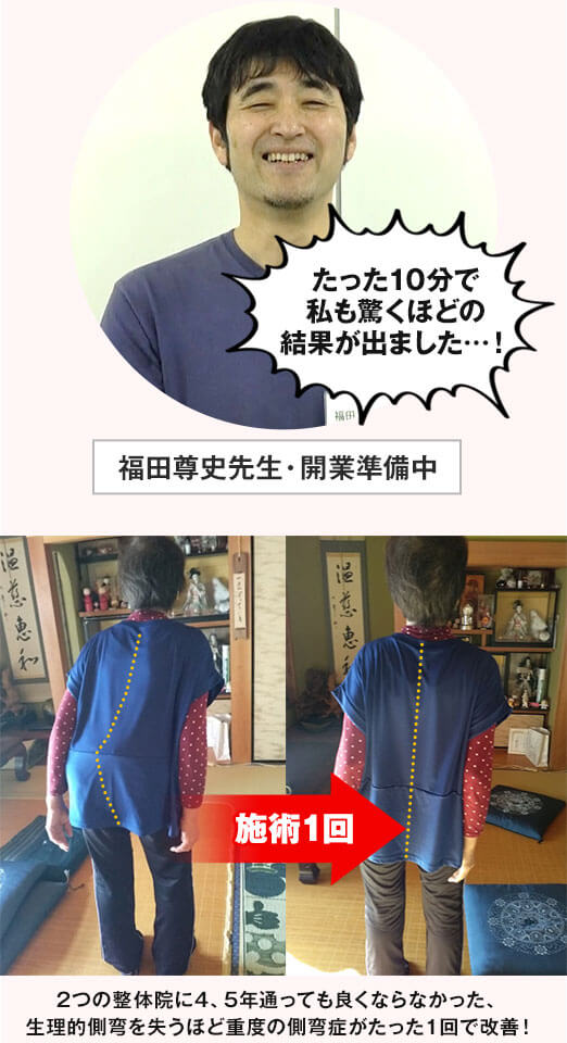 側弯症、五十肩すら触れる・撫でるだけで1回で治る - たった1人への施術をきっかけに、100%クチコミのみで日本全国まで